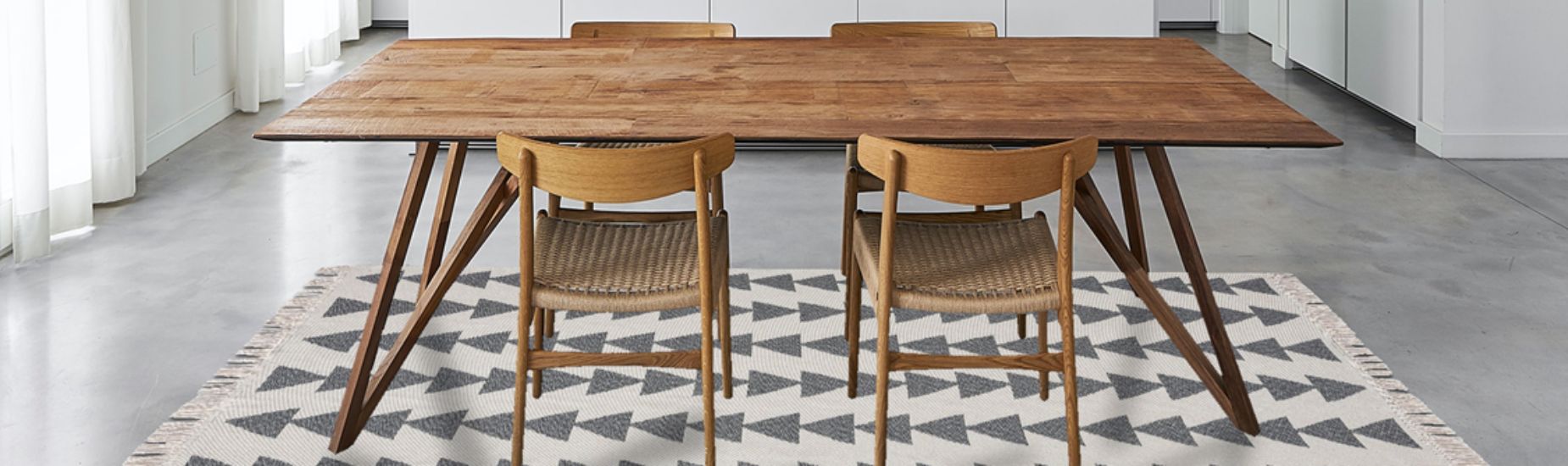 Dans une salle à manger, le tapis doit être à la fois beau et fonctionnel. Les matériaux résistants et faciles à nettoyer, comme le polypropylène ou certains types de laines traitées, sont des choix judicieux. Ils offrent une résistance aux taches et à l'usure quotidienne, deux aspects essentiels dans un espace où les repas sont partagés. Les tapis en fibres naturelles, comme le jute ou le sisal, peuvent également être appropriés, apportant une texture et une chaleur naturelles à la pièce.