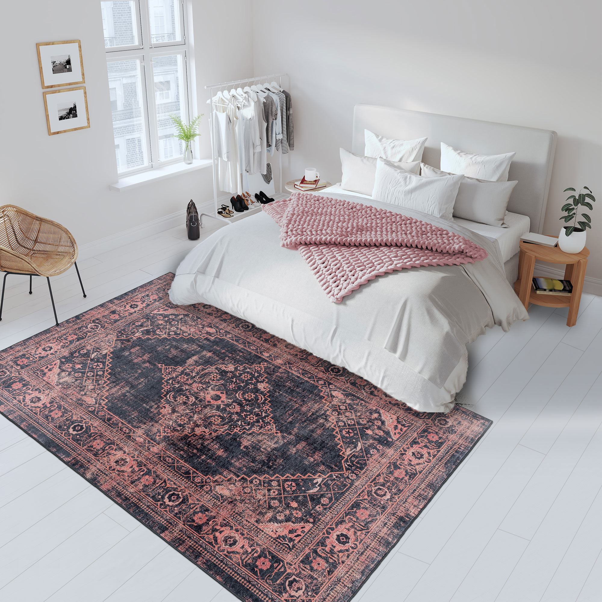 ll faut dire que le traitement graphique de ce tapis AKIAK le modernise énormément : des dessins typiques mais dans des couleurs douces, fondues et même un peu estompées lui donnent un petit air vintage très tendance !
