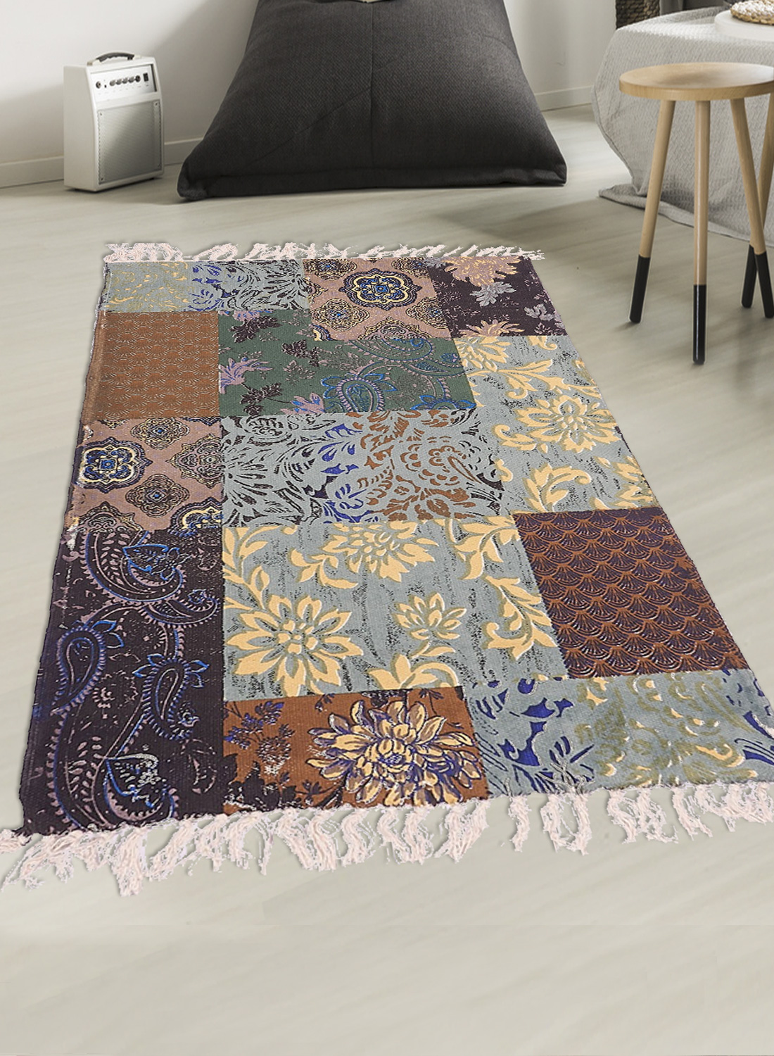 Tapis à franges BLUE FLOREA bleu