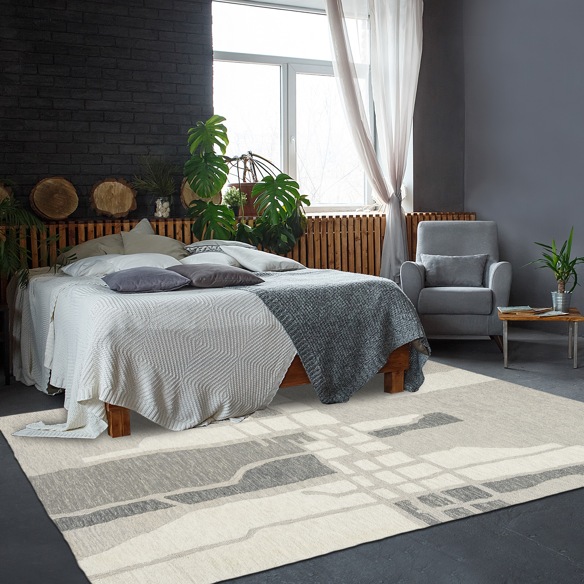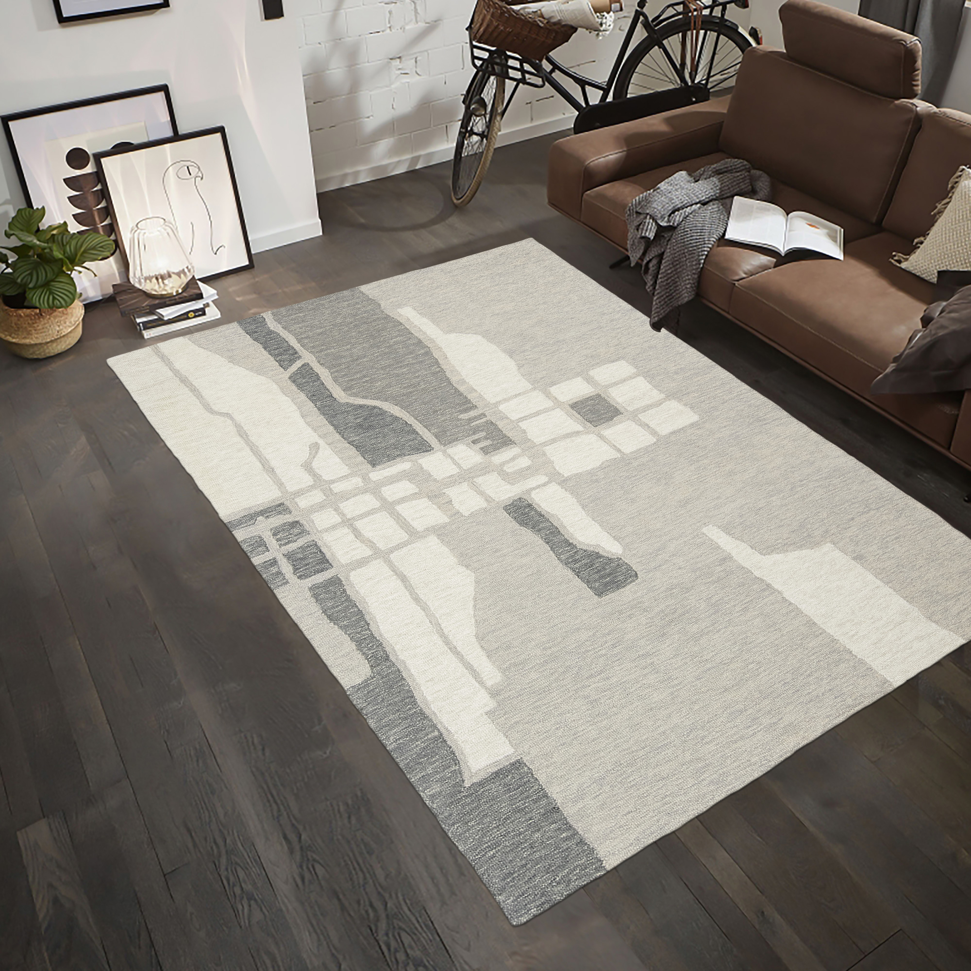 Ce tapis BUILDING est composé de laine et de coton, il a été entièrement tufté à la main en Inde.