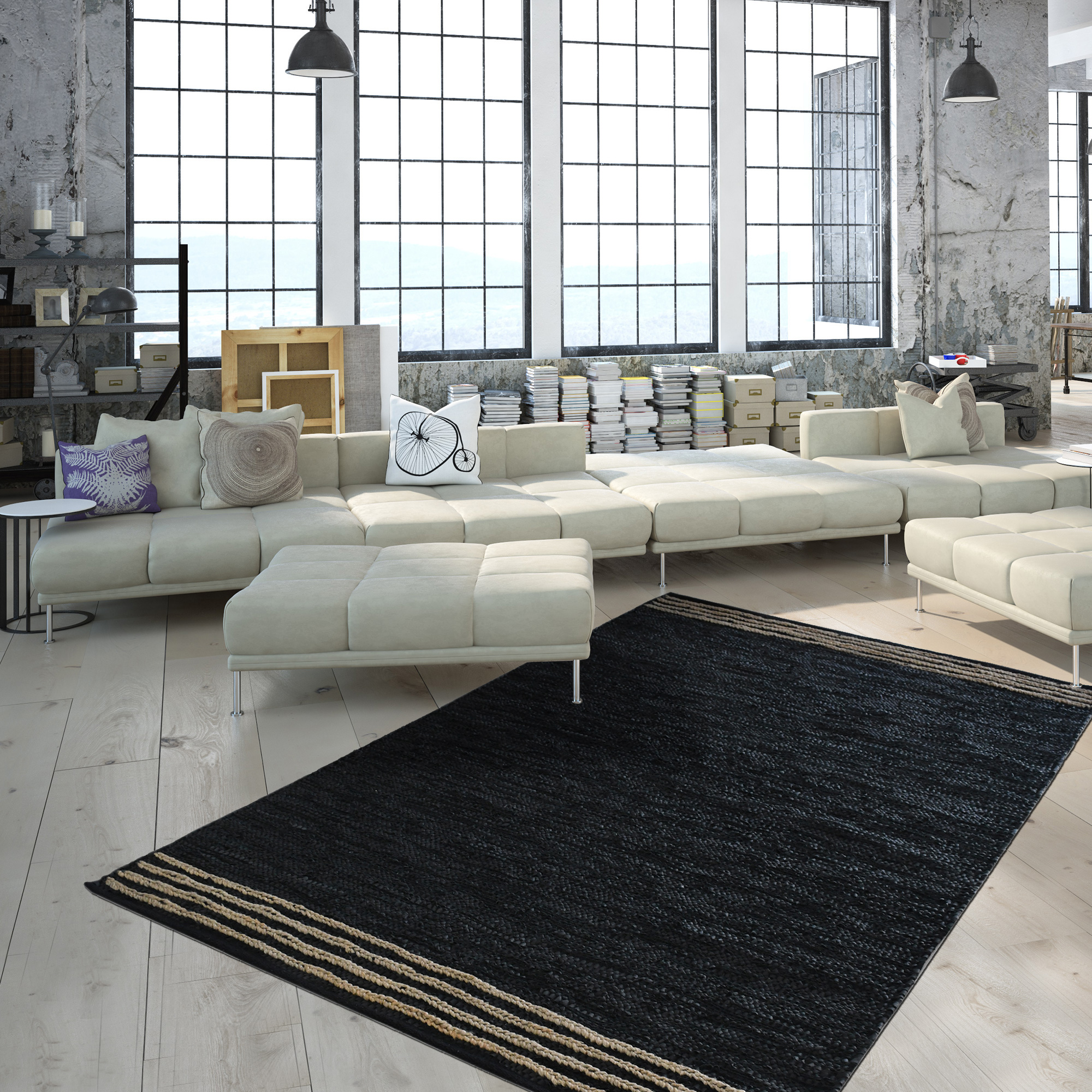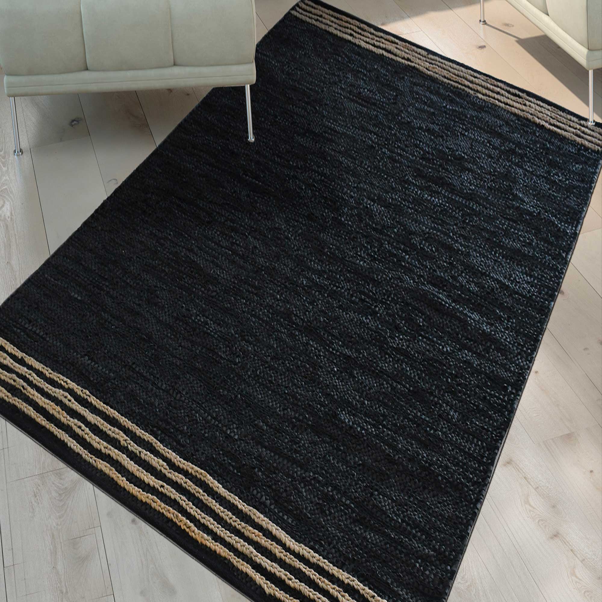 CUIRLINE est un tapis original tissé à la main en cuir avec quelques touches de jute. Son mode de tissage est exceptionnel, des bandes de cuir s'entrecroisent et apportent de la texture, la jute forme des tresses pour finir en beauté ce tapis et lui donner du contraste et encore plus de relief.