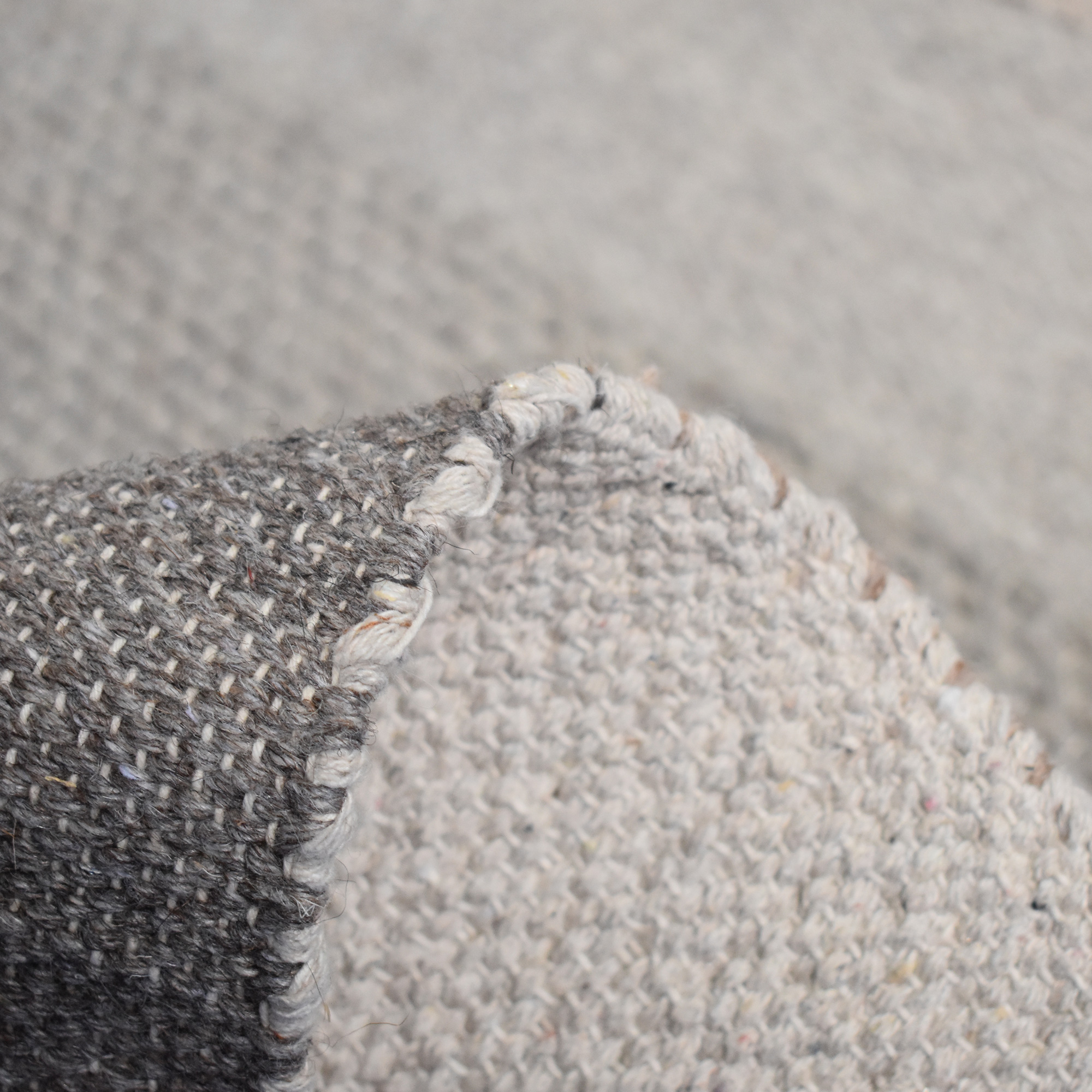 - Ce tapis est un tapis Kilim, c'est un tapis tissé à plat dont le velours est uniquement constitué de fils entrecroisés par la chaîne et la trame (il n'y a pas de brins poils, pas de hauteur de velours : c'est un tissage à plat)