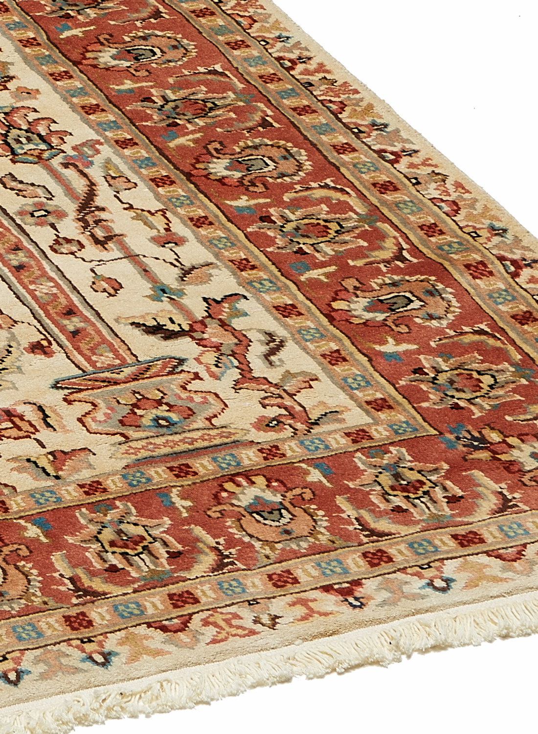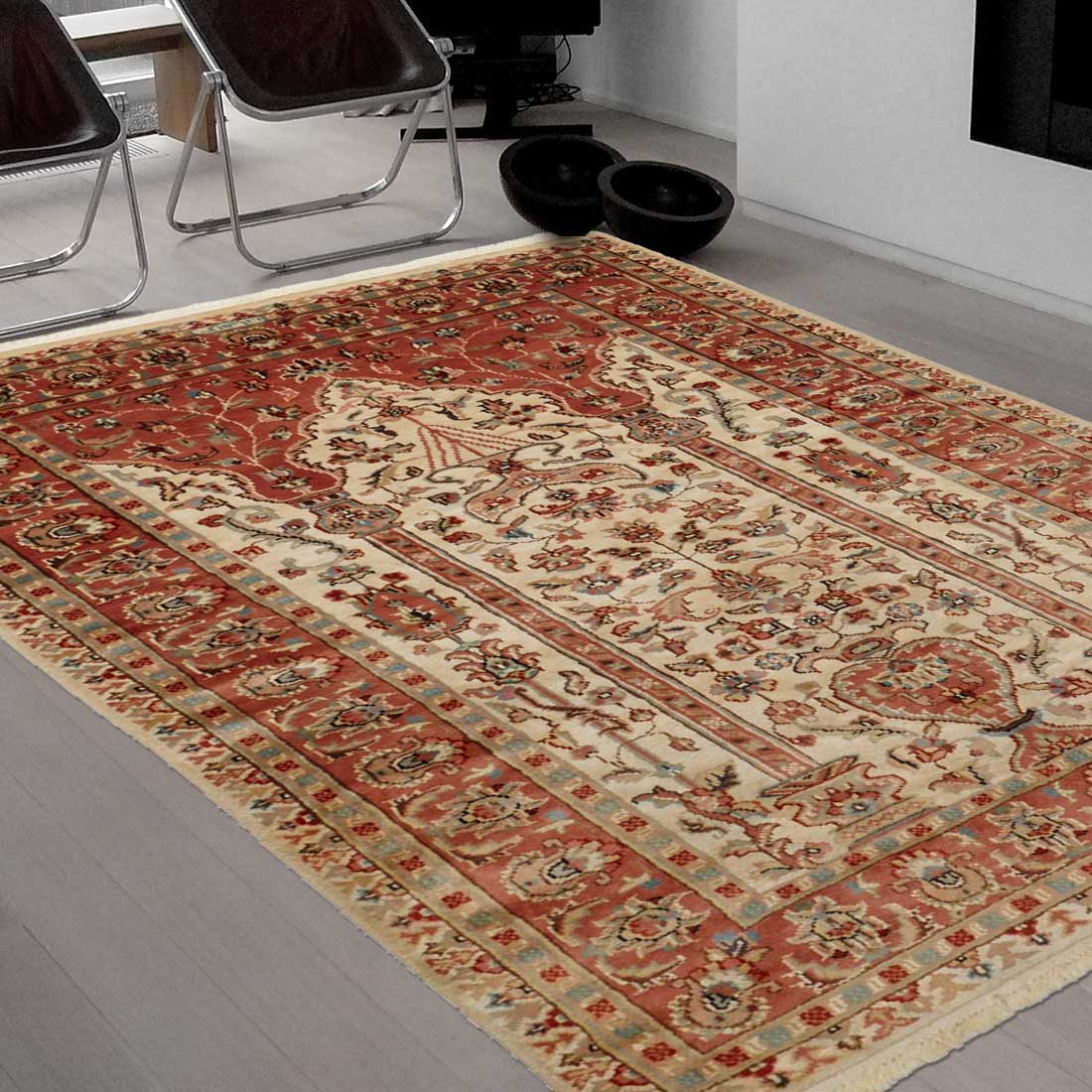 Ce tapis est un authentique tapis d’orient entièrement noué à la main au Pakistan par des artisans spécialisés qui se transmettent leur savoir-faire de génération en gérénation.