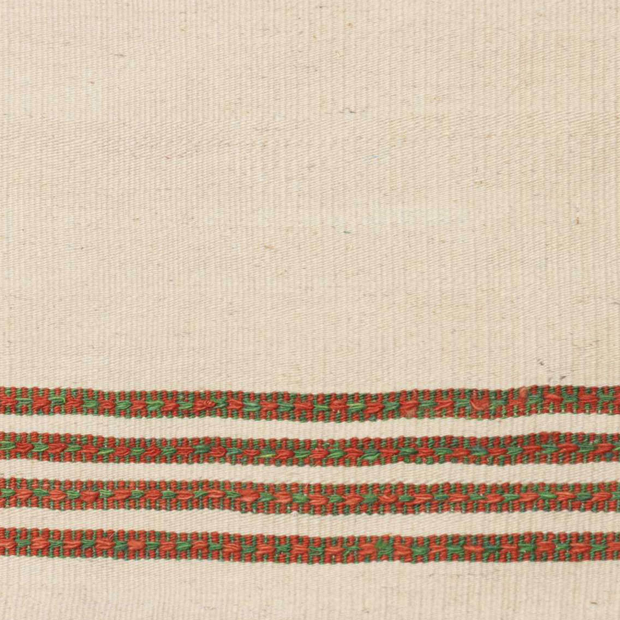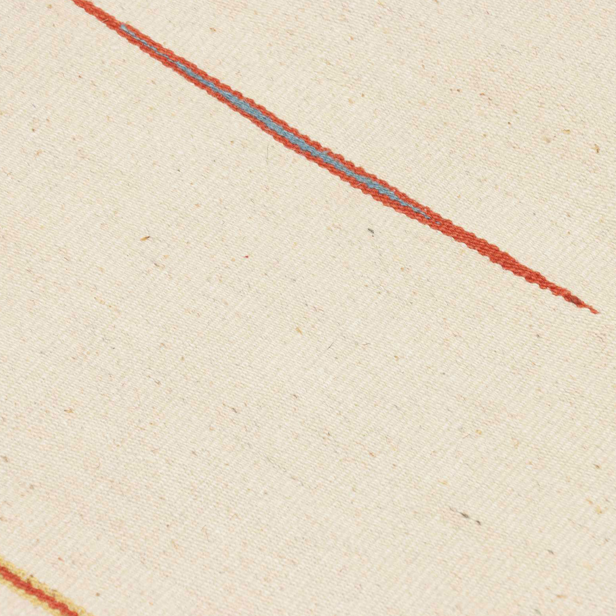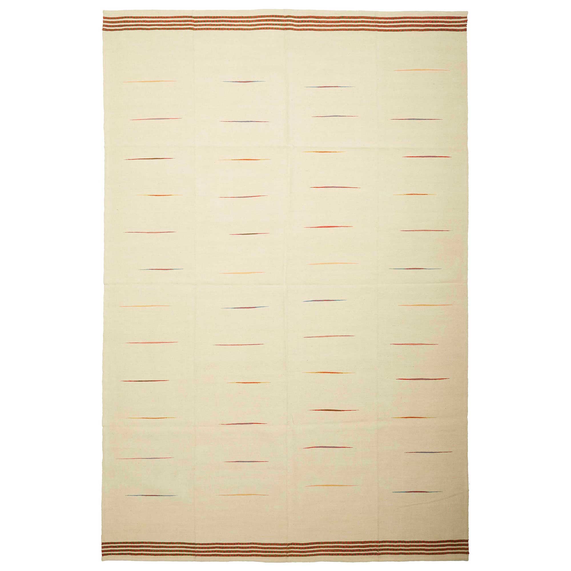 - Ce tapis est un tapis Kilim, c'est un tapis tissé à plat dont le velours est uniquement constitué de fils entrecroisés par la chaîne et la trame (il n'y a pas de brins poils, pas de hauteur de velours : c'est un tissage à plat)