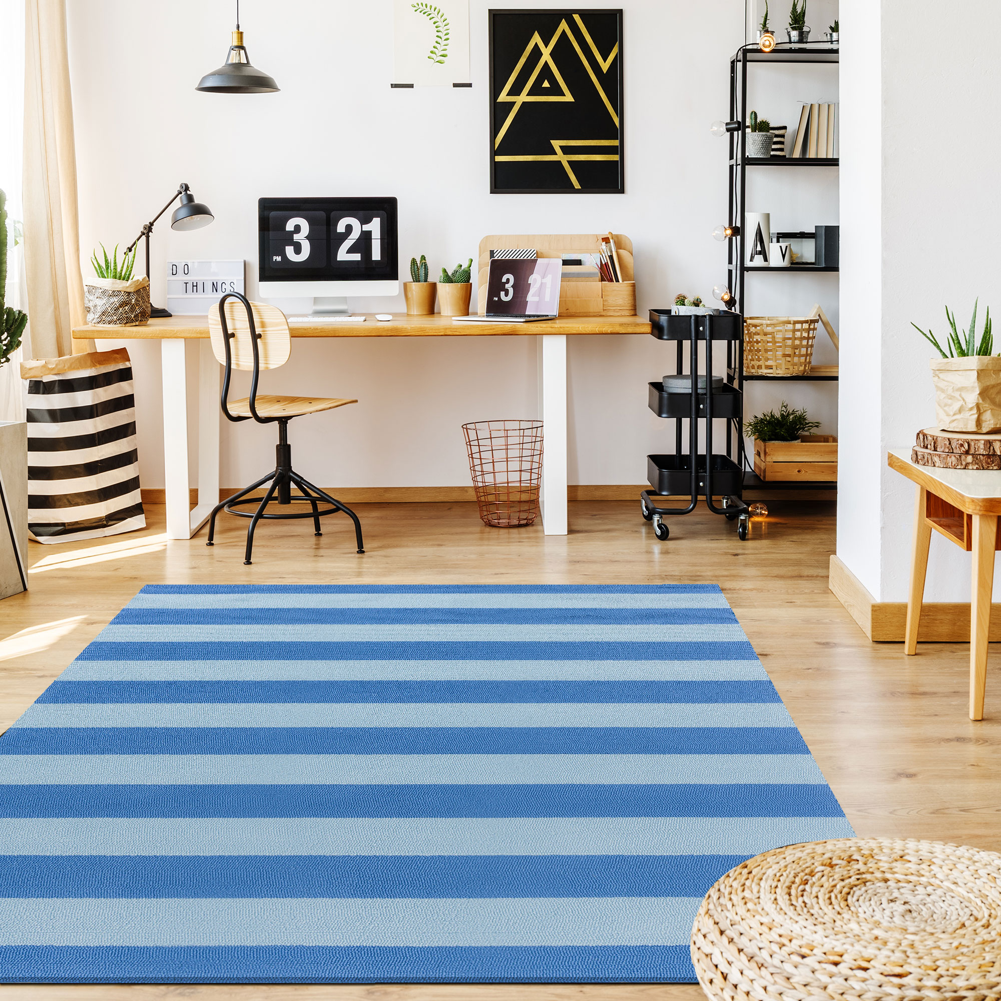 Le tapis LILLE est un motif à larges rayures dans deux couleurs tonales pour créer une sensation chic et classique.