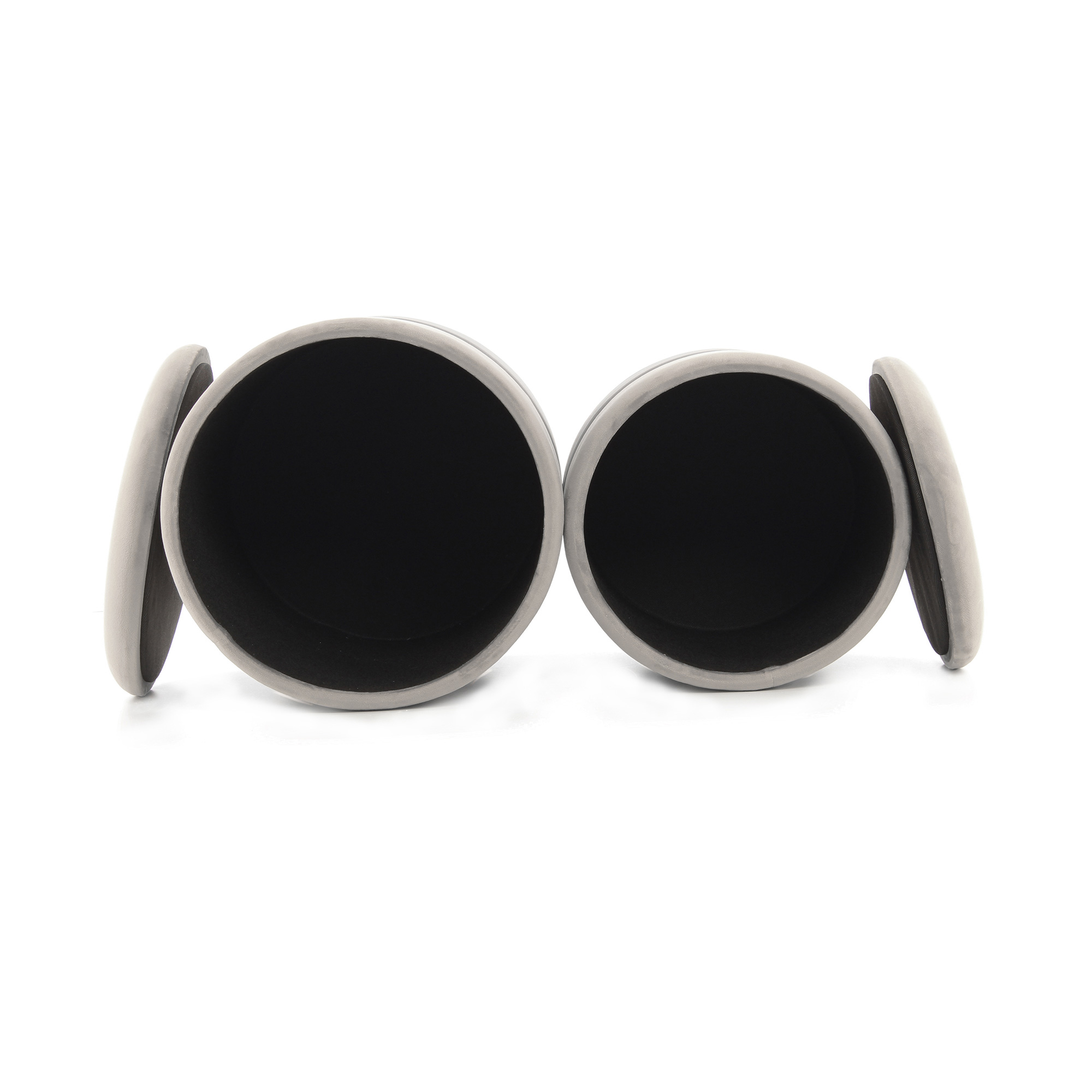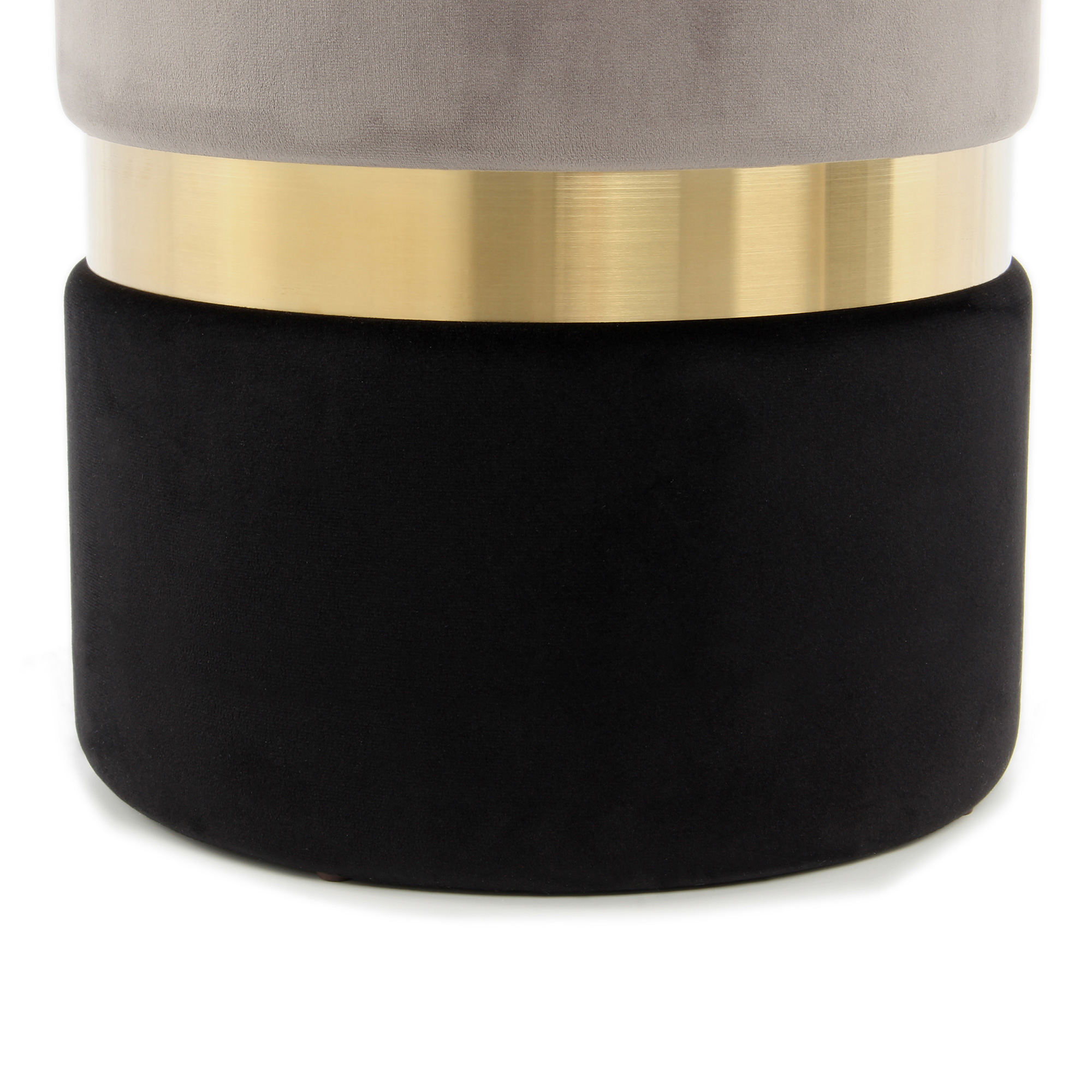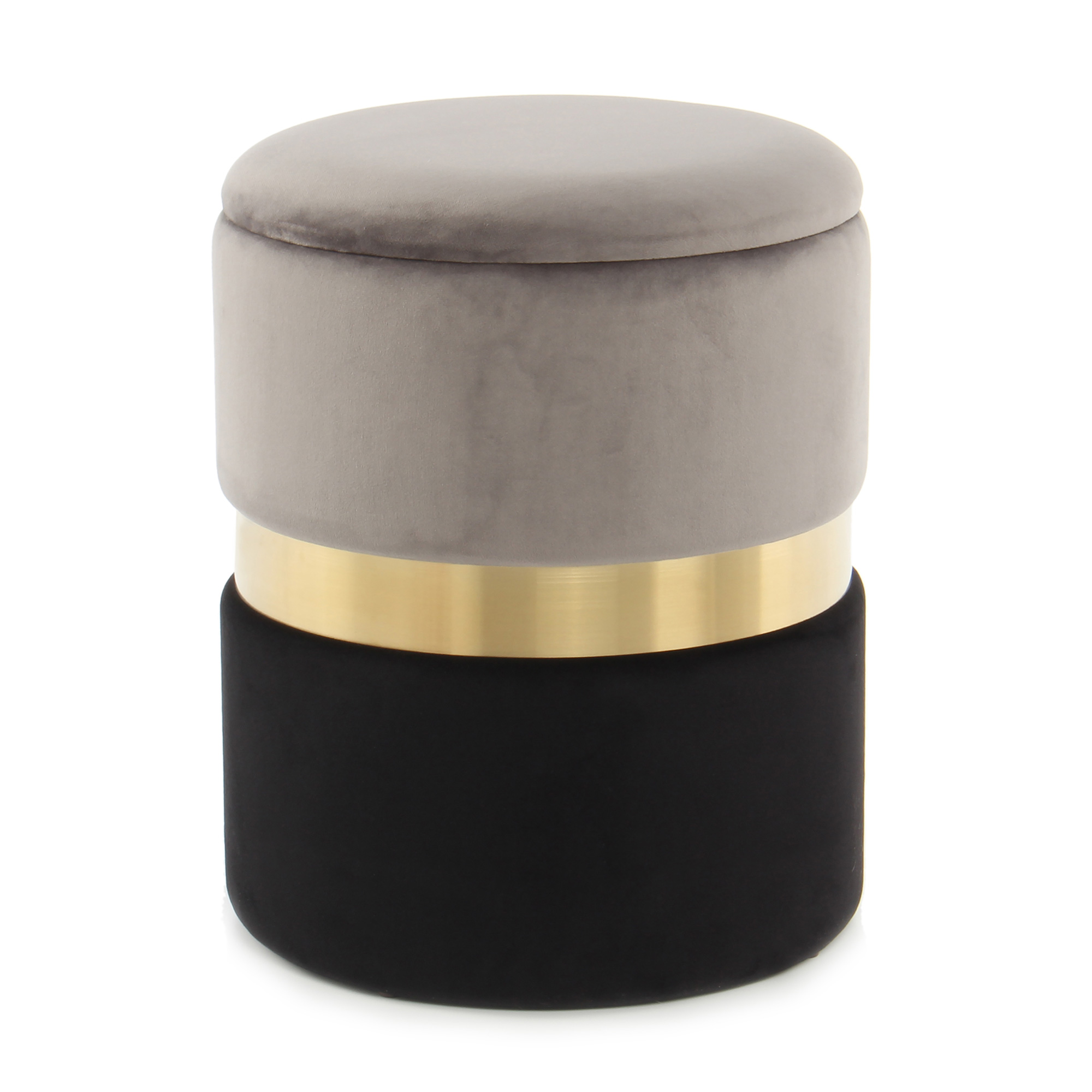 2 Tabourets contemporain ZABA Gris, or, noir - Lot de 2 Poufs -BSCI - O&KO - Revêtement en tissu : 100% polyester, Médium, acier inoxydable, contreplaqué Dimensions : hauteur38/44 x largeur31,5/36 x longueur31,5/36. Poids :6,1Kg - Exclusivité de la collection : O&KO