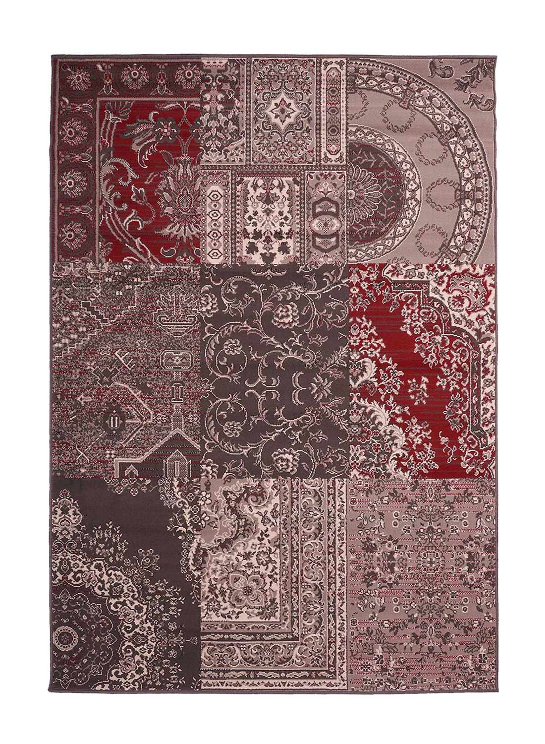 Tapis contemporain dessin LYN1 NYBRO gris, rouge