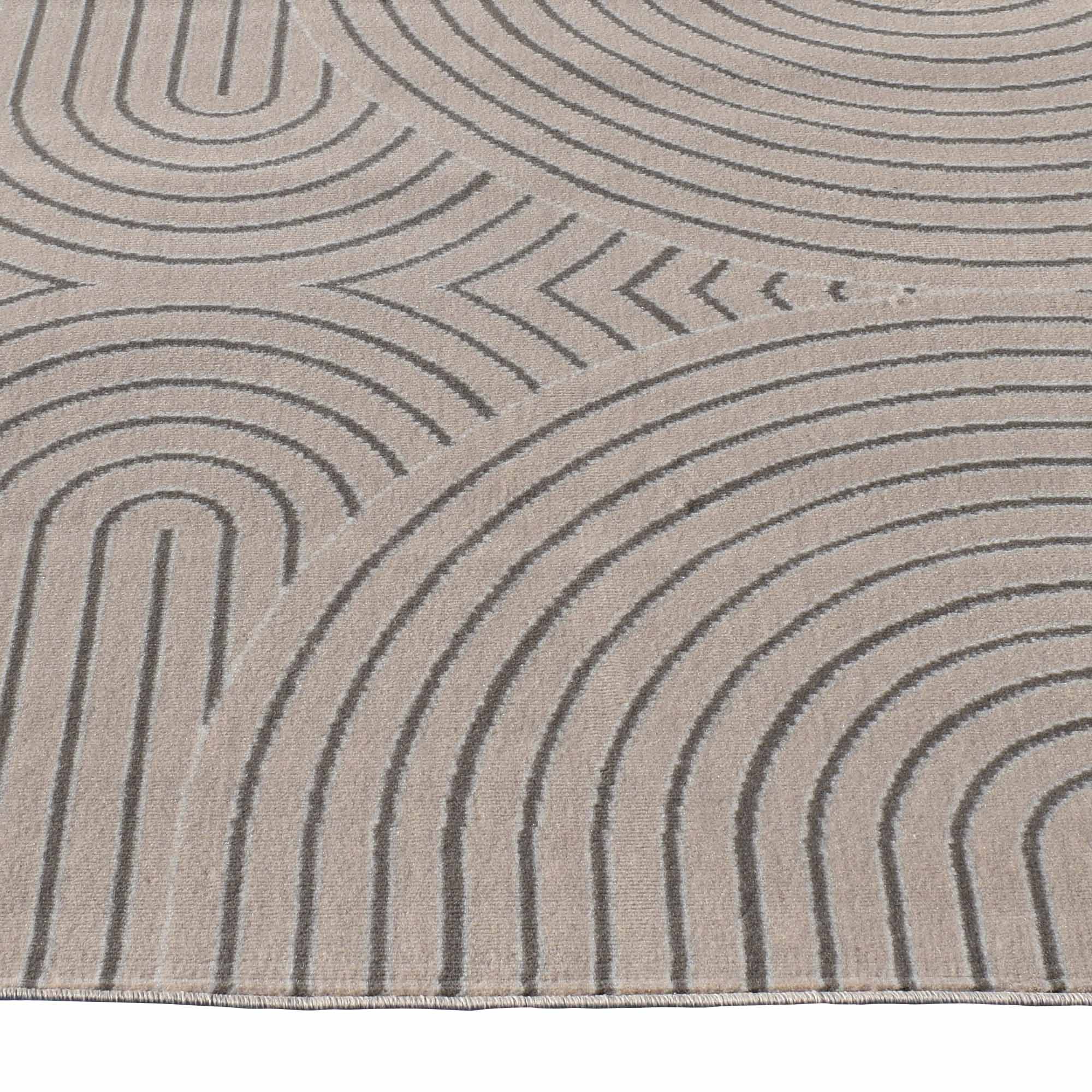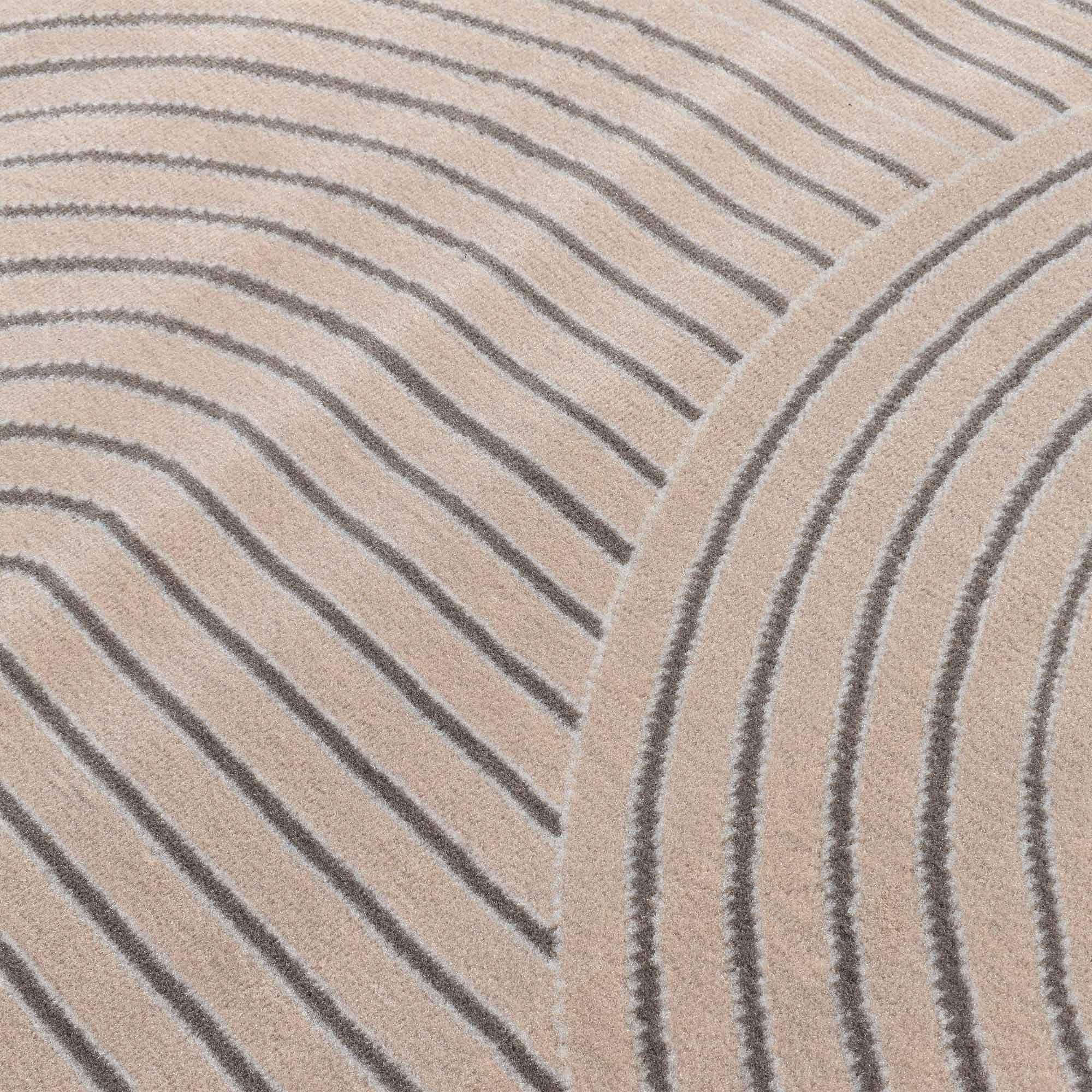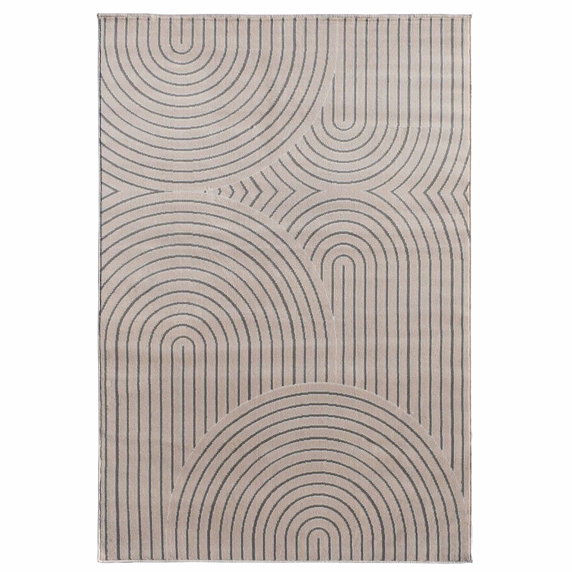 Ce tapis beige aux motifs noirs en arcs et lignes concentriques apporte une touche contemporaine et graphique à votre intérieur. Son contraste subtil crée une ambiance chic et chaleureuse, idéale pour un salon moderne ou une chambre design. Facile à intég