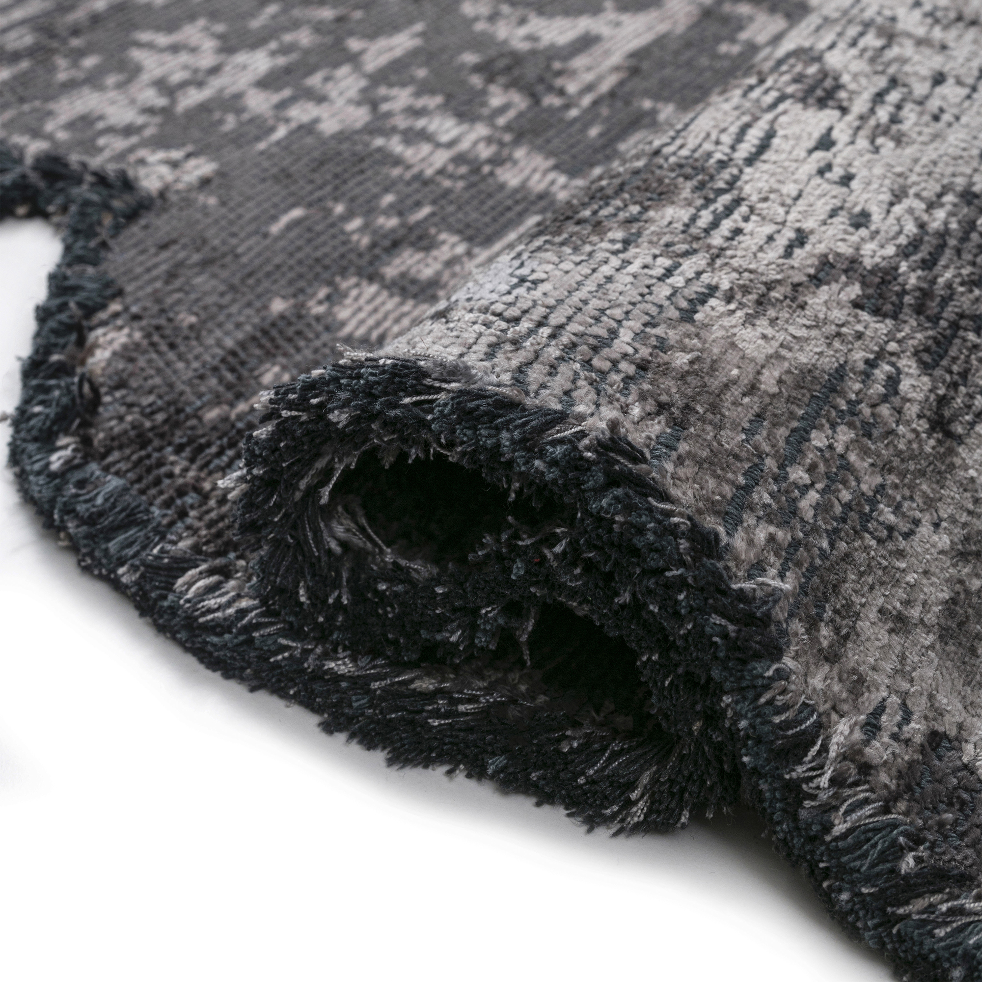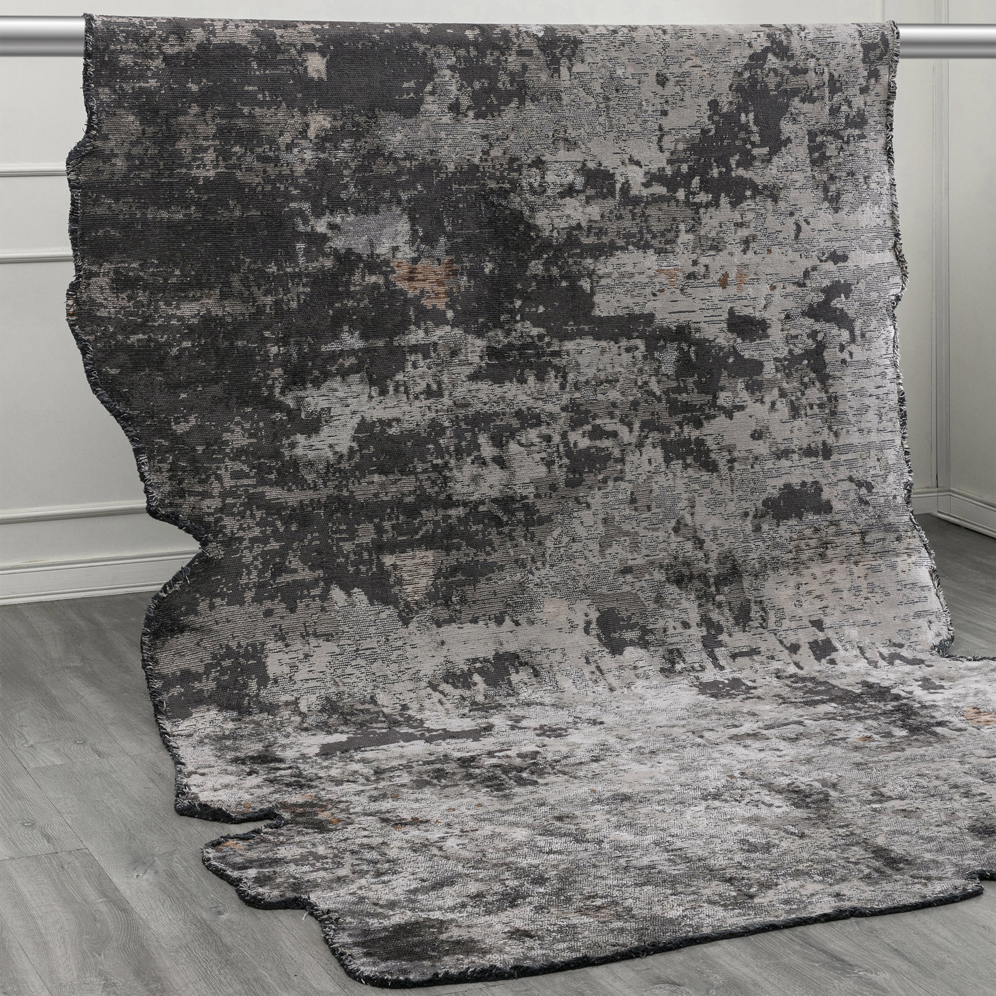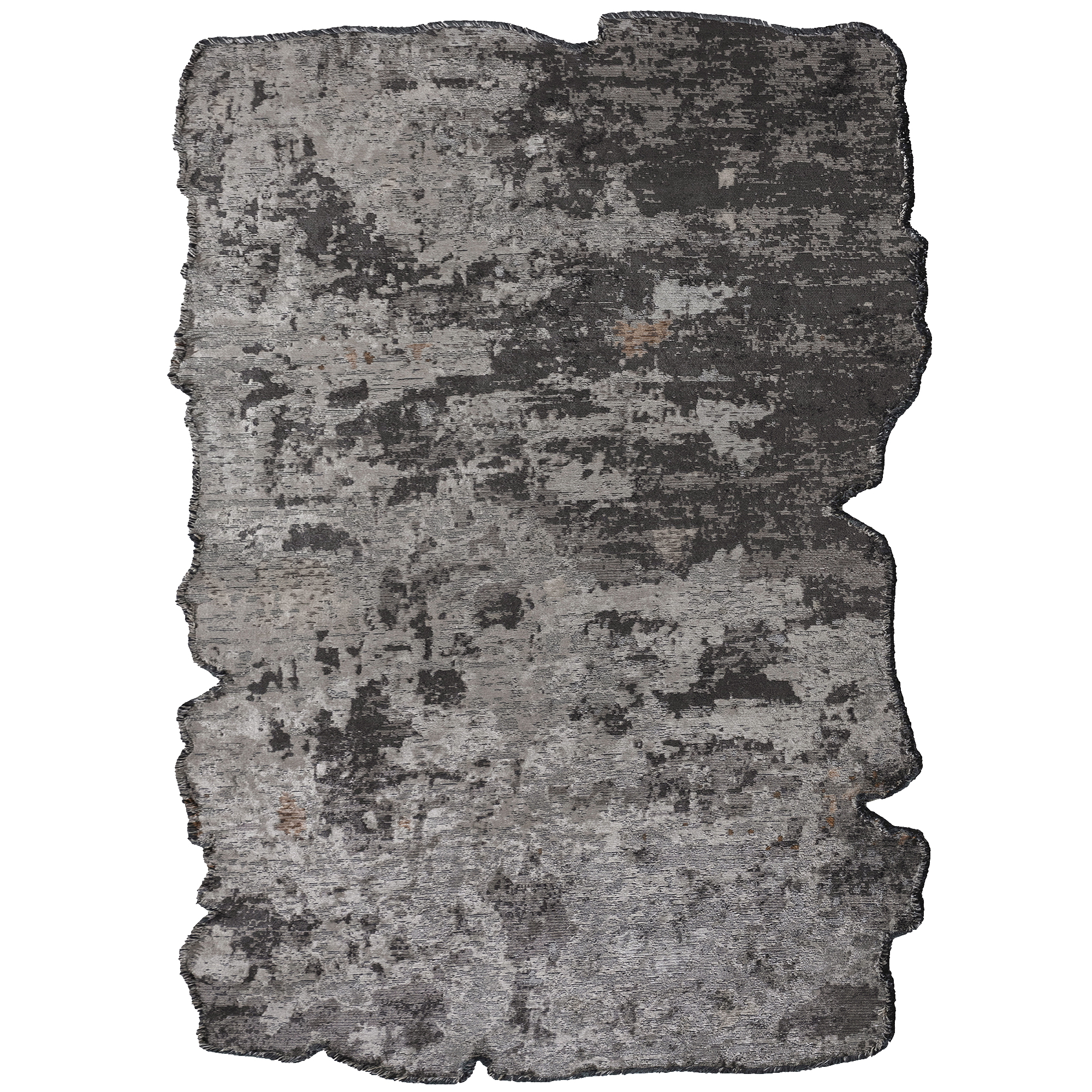 Tapis à forme irrégulière et finition artistique façon peinture. Son effet vieilli apporte un charme brut et tendance. Une pièce idéale pour dynamiser un espace avec style et originalité.