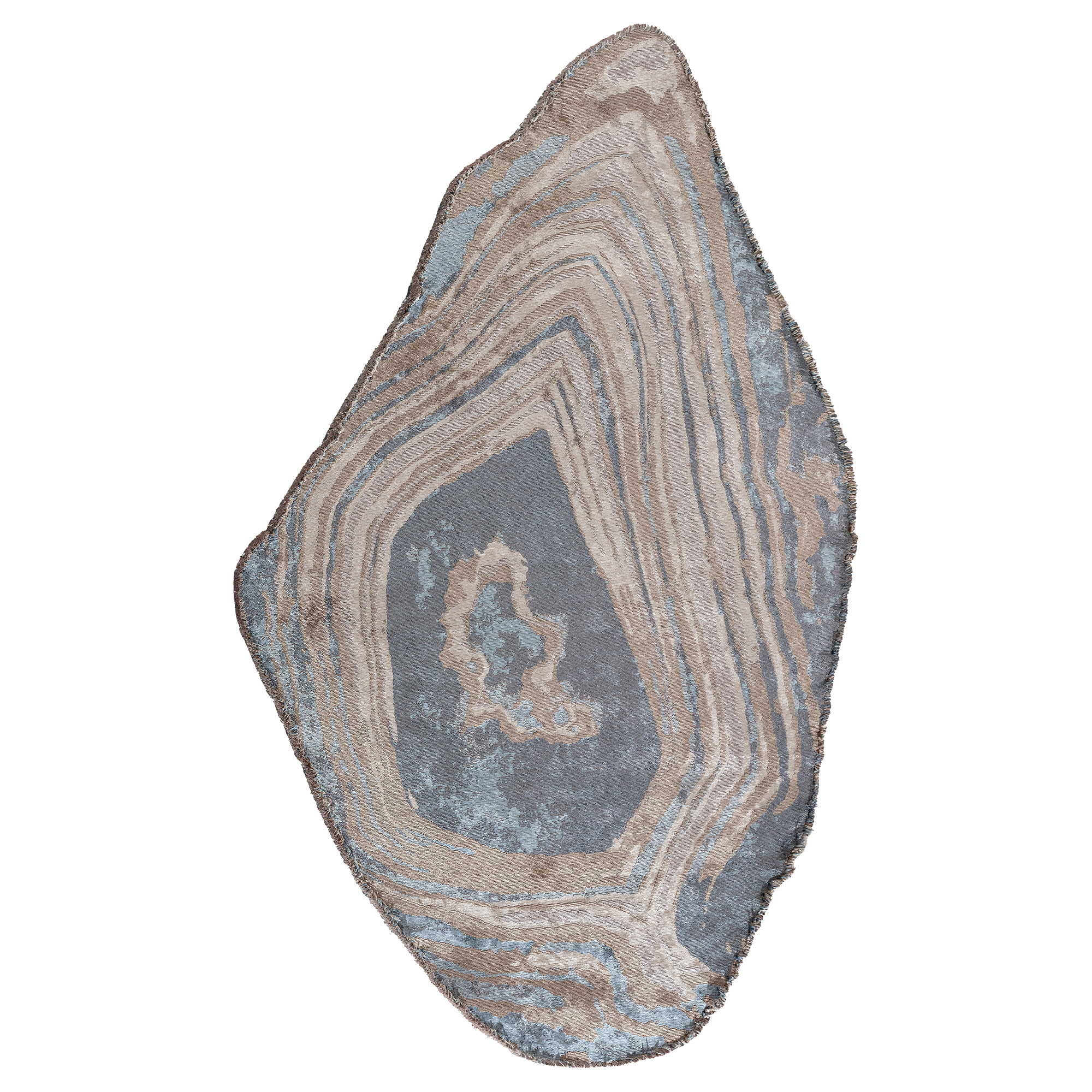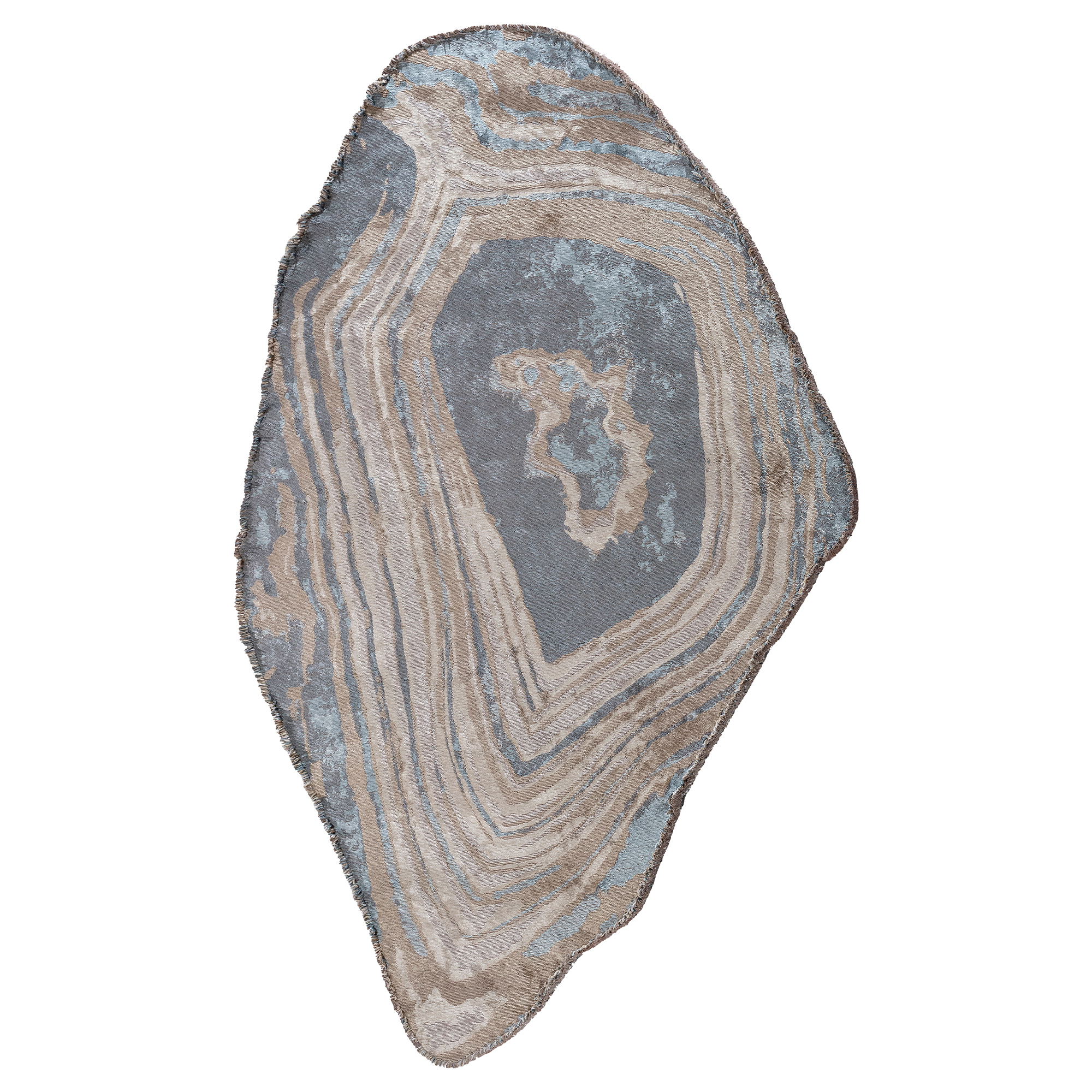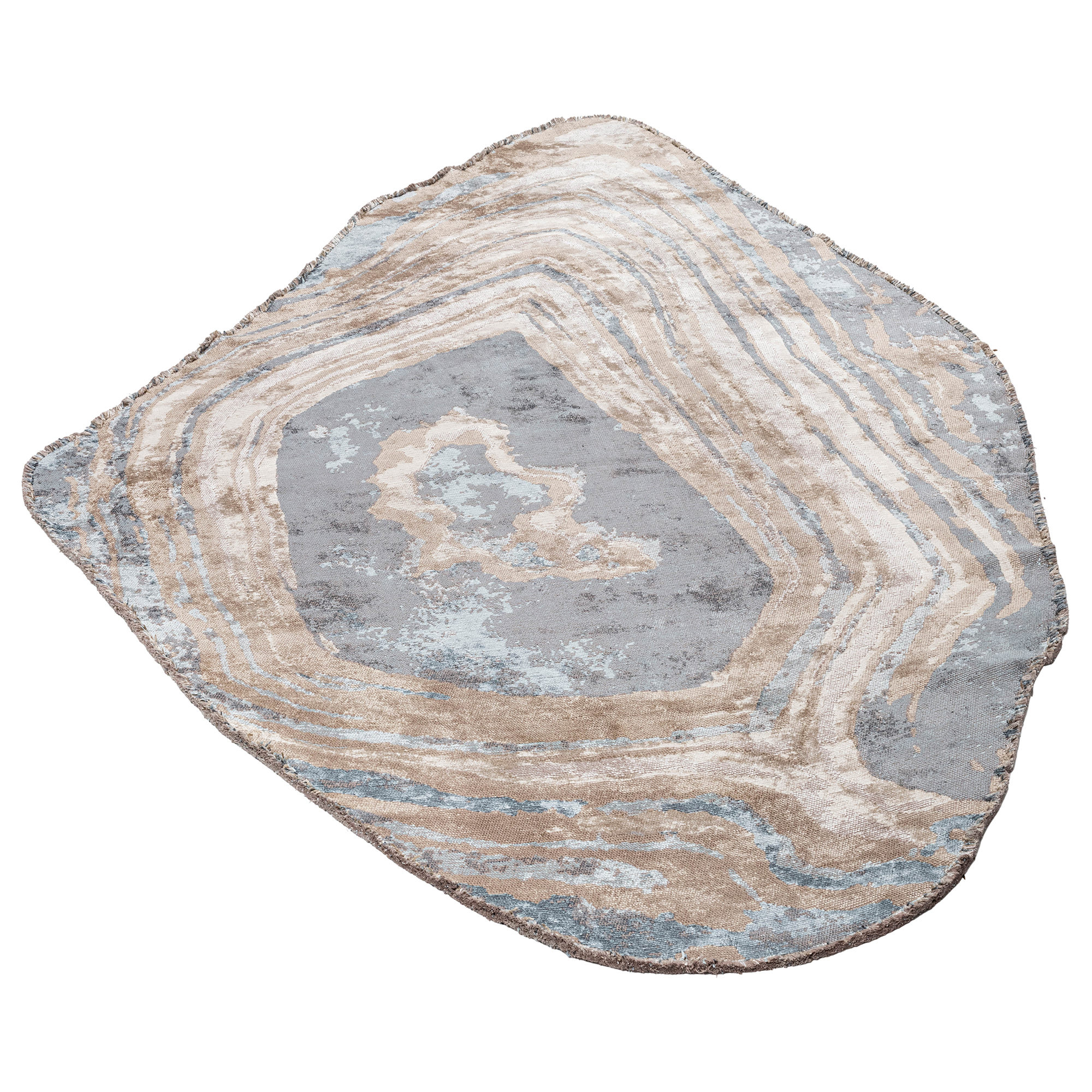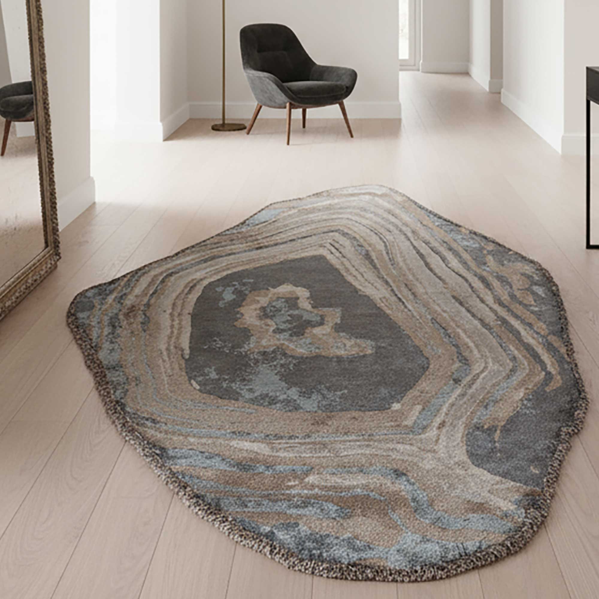 Tapis à motif minéral et silhouette irrégulière. Inspiré des roches naturelles, il apporte structure, profondeur et originalité à une déco moderne ou artistique.