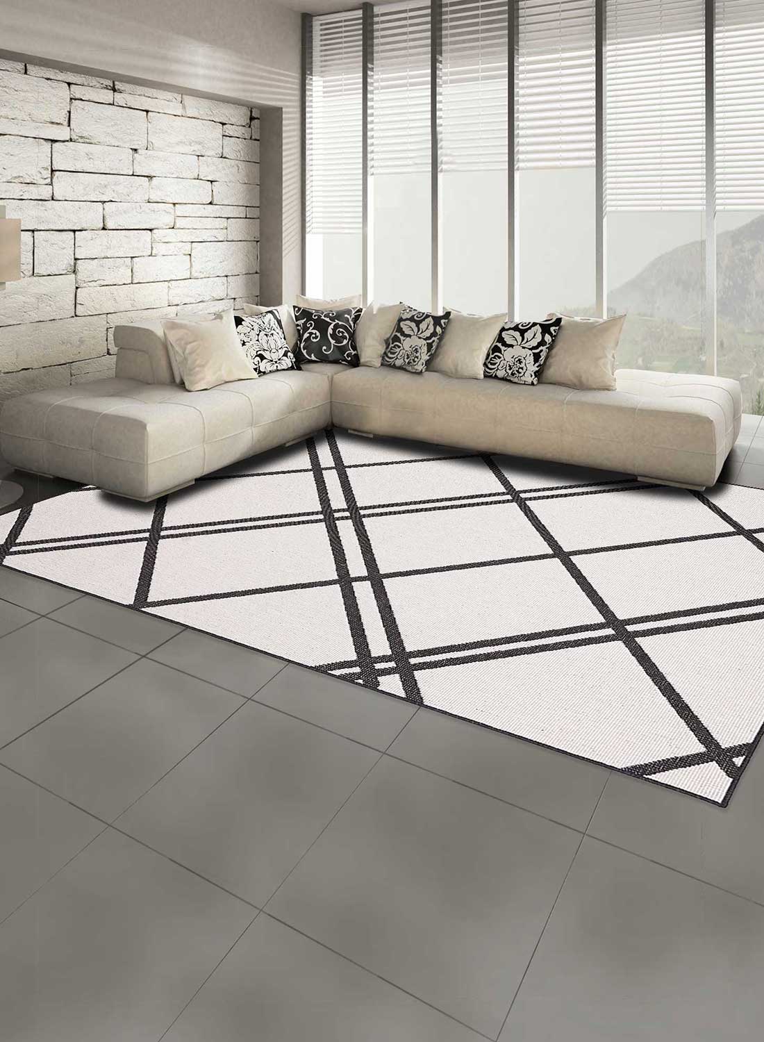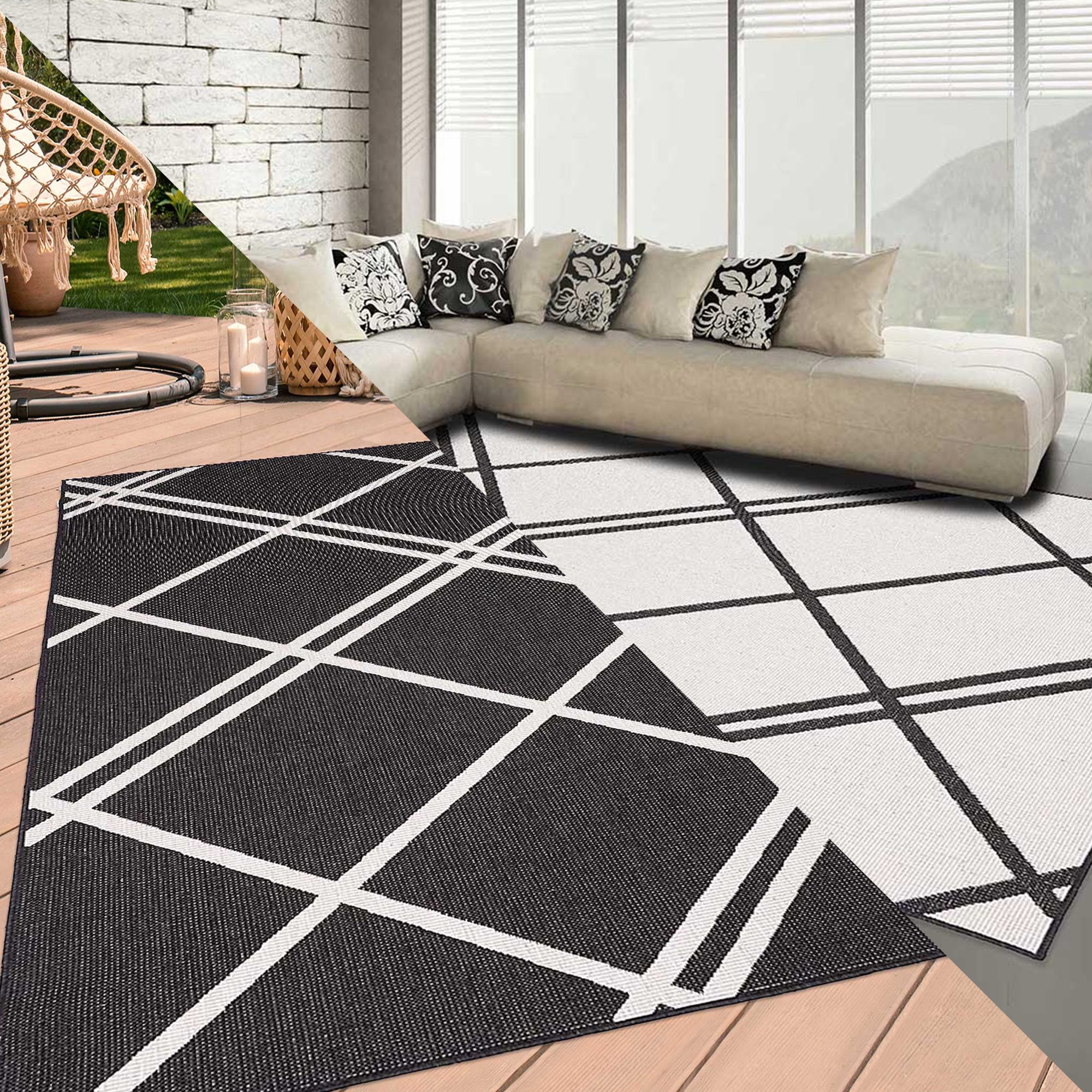 Tapis contemporain exterieur interieur LYN2 AB REVERSIBLE noir, écru