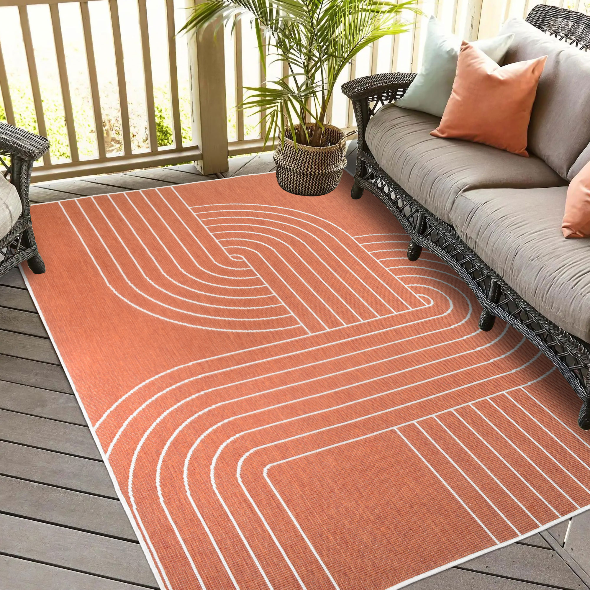 Comme pour tous les meubles et objets de déco d'extérieur, ce tapis ne doit pas être laissé à l'extérieur dans des conditions climatiques difficiles ou à la lumière directe du soleil pendant des périodes prolongées. Il faut également prendre soin de le sécher s'il est trempé et saturé d'eau. Assurez-vous enfin que la zone où le tapis sera placé est bien sèche avant de l'installer.
