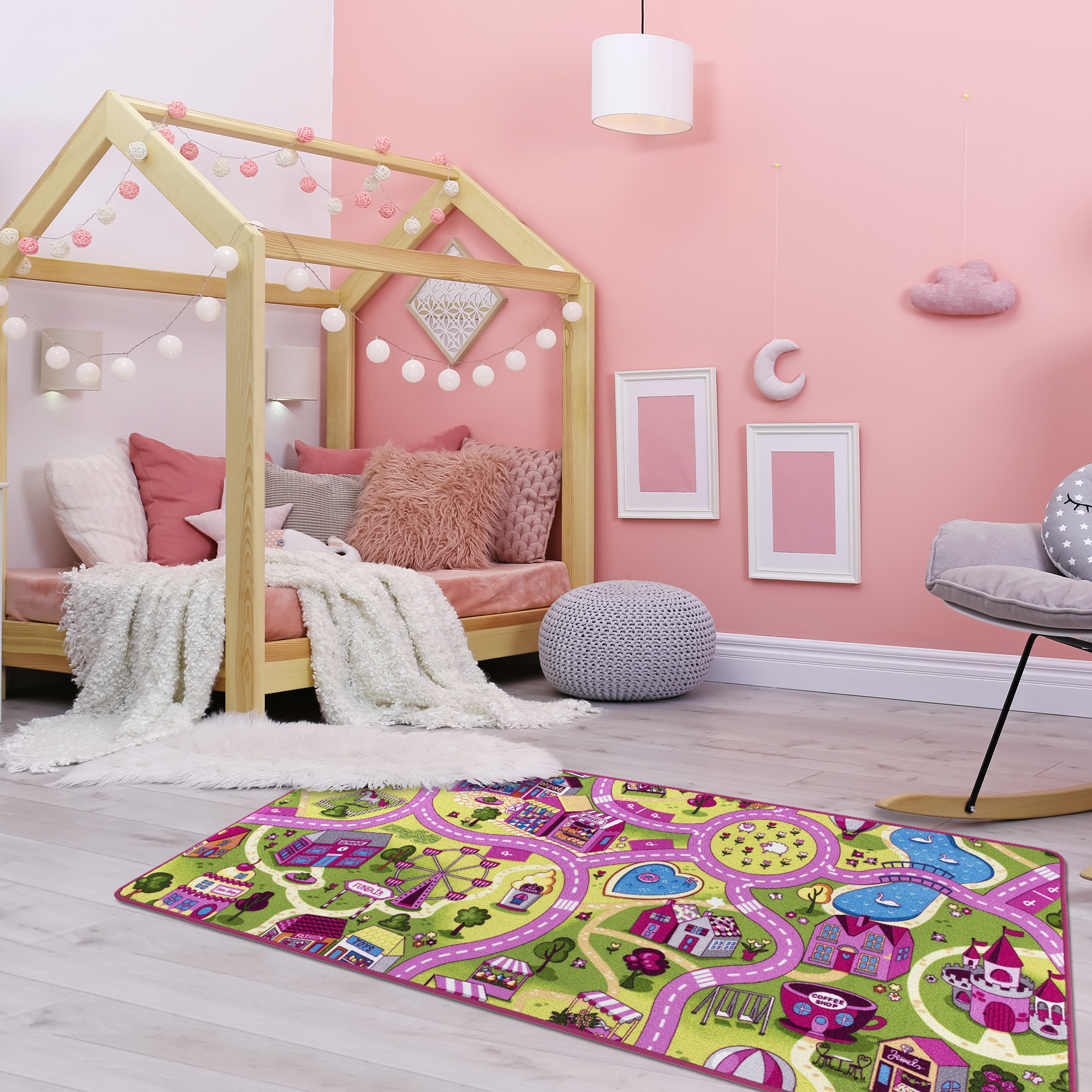 Ca tapis PINKROAD2 est parfait pour lier déco, jeu et confort. Votre enfant passera des heures dessus à jouer avec ses voitures, personnages ou animaux. Il s'inventera des histoires confortablement installé, se construira un monde imaginaire au chaud, ce tapis sera un formidable terrain de jeu pour lui !