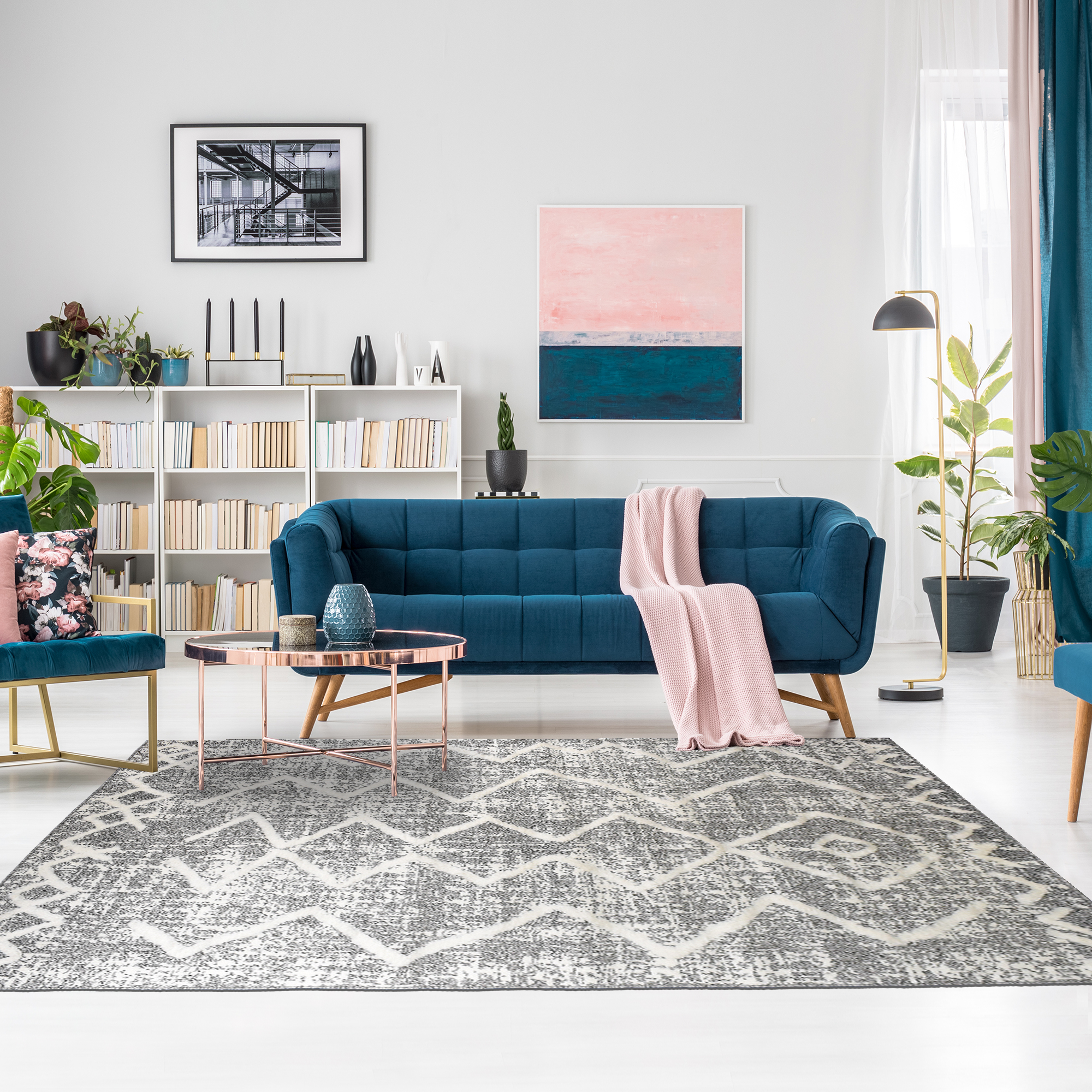 Ce type de tapis apporte énormément de chaleur et de douceur aux pièces. En installant un tapis shaggy chez vous, vous créerez une ambiance chaleureuse, cosy et douillette, vous vous sentirez bien protégés du froid et n'aurez qu'une envie : vous installer dessus ! Coté esthétique, son graphisme inspiré des dessins berbères - très tendance actuellement - donnera beaucoup de style à votre intérieur et ses couleurs neutres lui permettront de s'intégrer aisément à toutes les pièces.