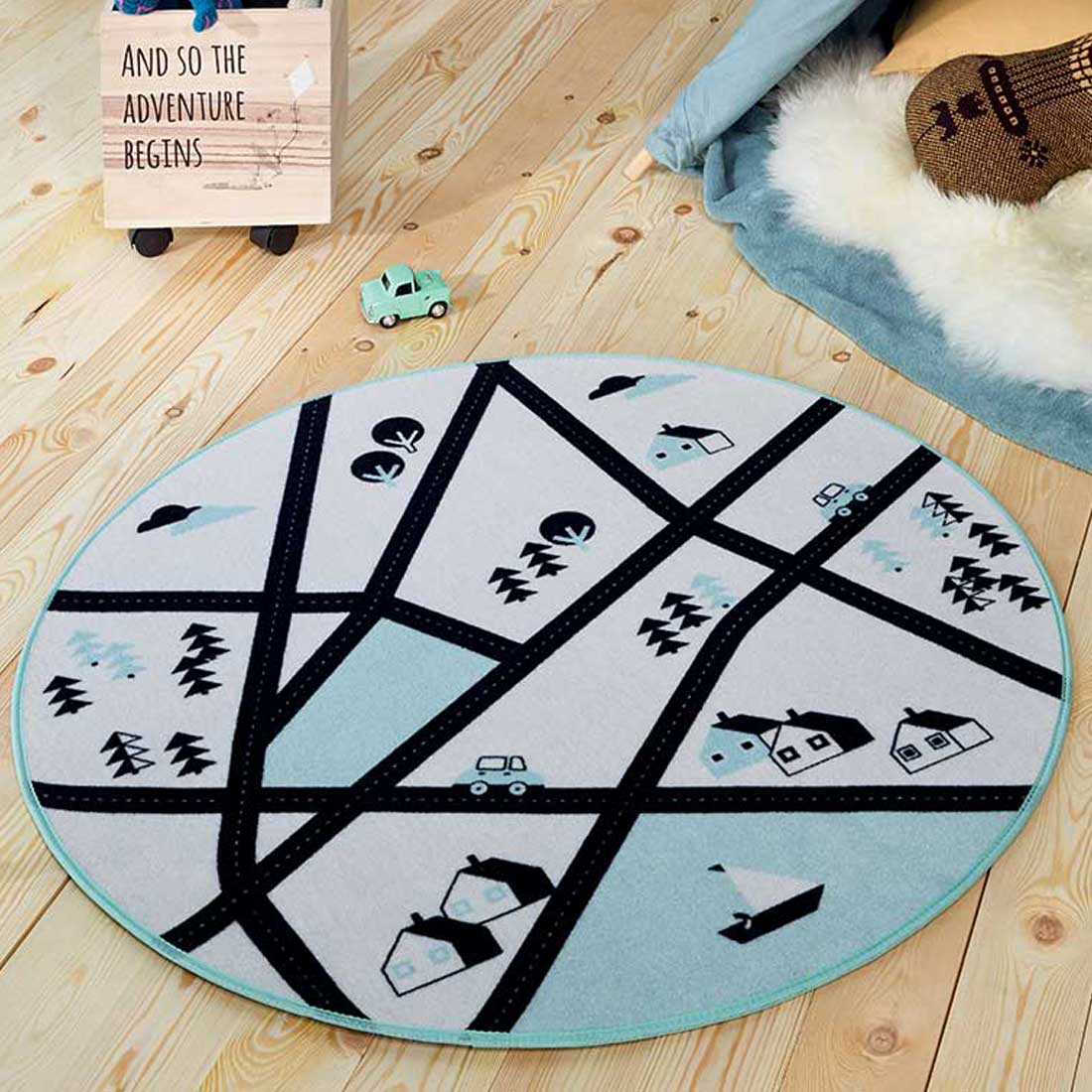Tapis de jeu RING ROAD SHAPE MD blanc, noir, bleu ciel