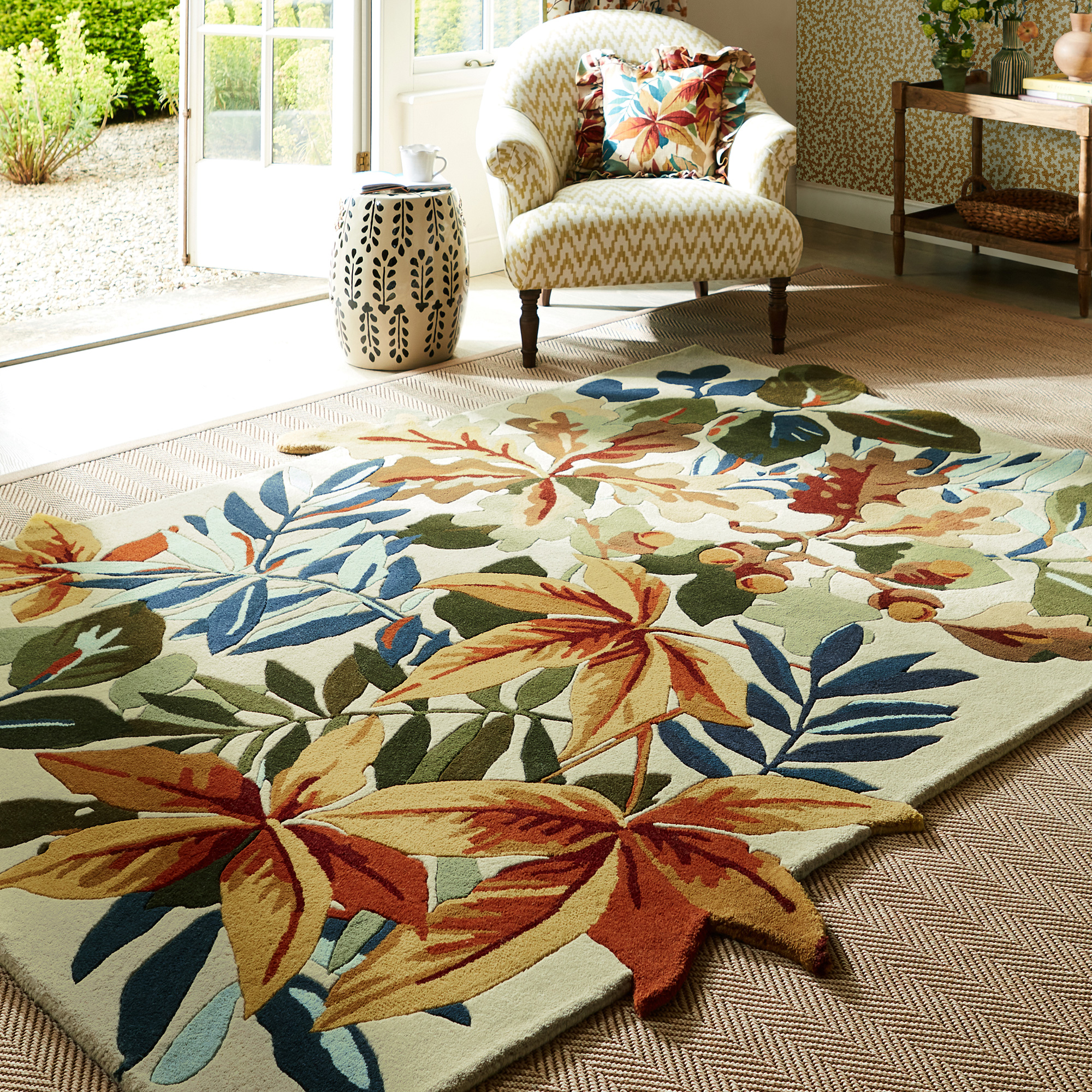 Faites entrer la nature dans votre salon avec ce tapis ROBINS WOOD de la marque SANDERSON. Avec ses couleurs d'automne et ses dessins de grandes et larges feuilles, ce tapis réchauffera votre intérieur et donnera beaucoup de caractère à votre pièce.