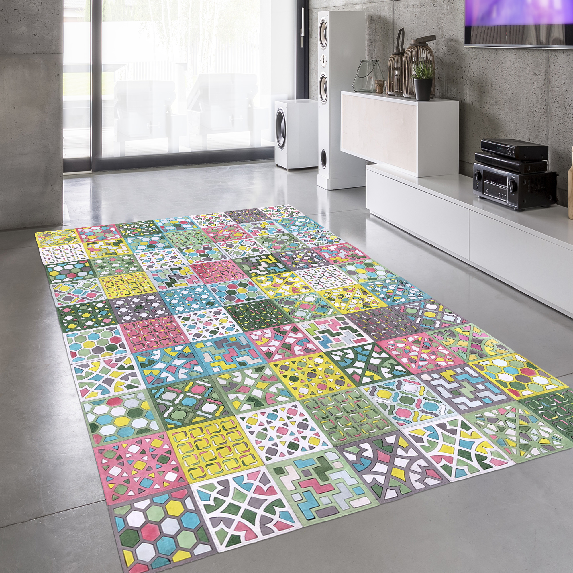 Tapis en cuir PASTEL ROCK CUIR multicouleur