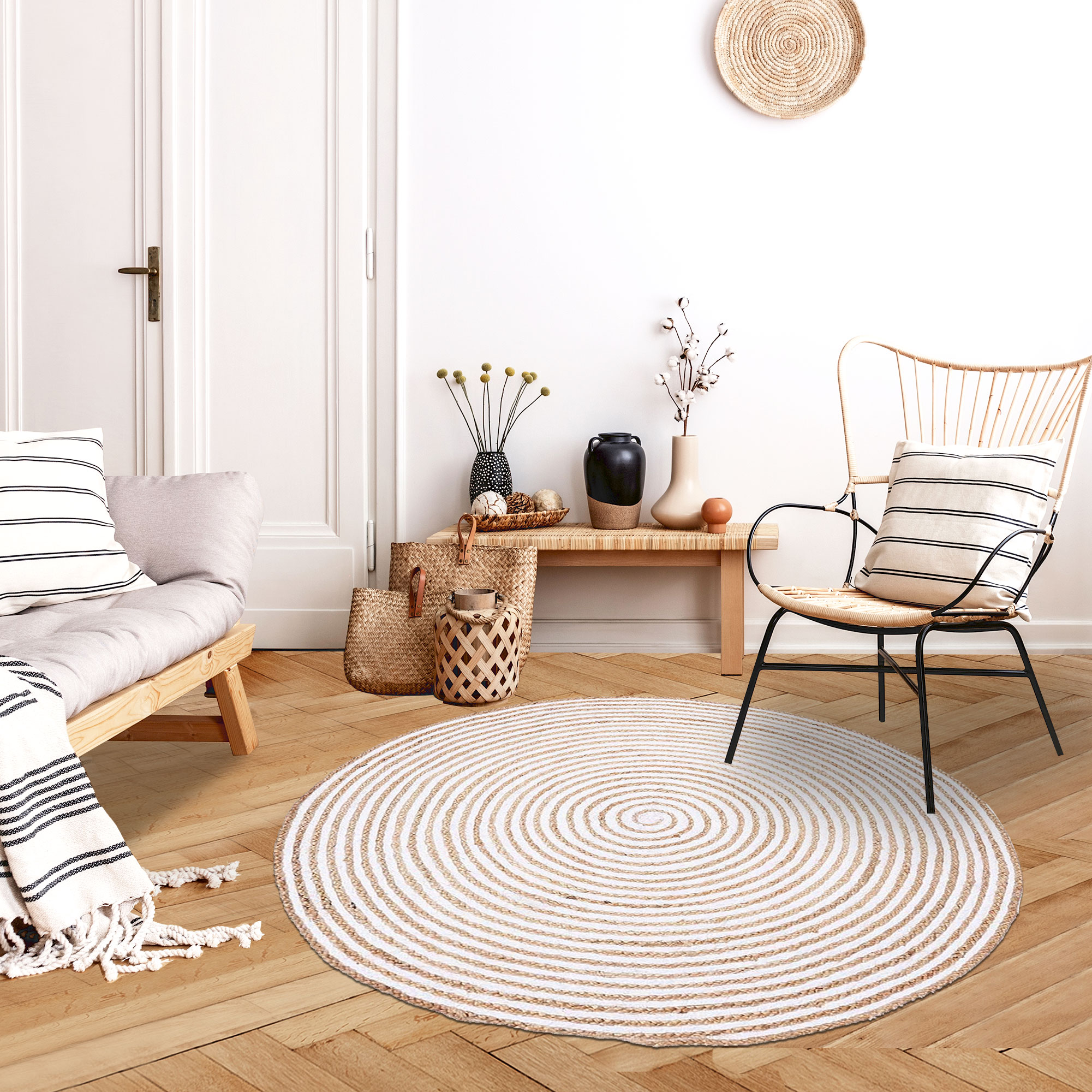 60% Jute, 35% Coton, 5% Polyester