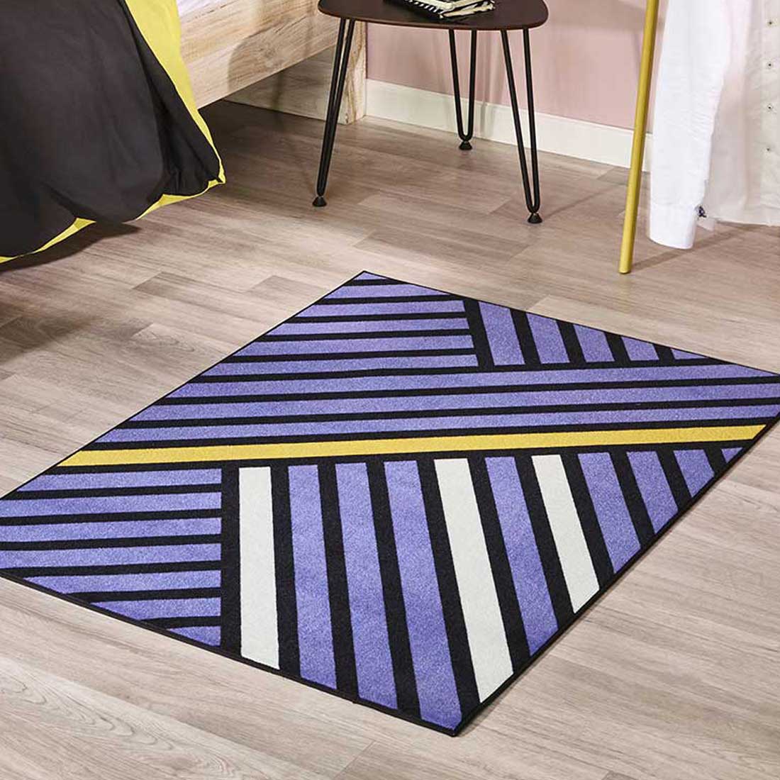 Tapis de chambre TRIANGLE MD violet, noir, blanc, jaune